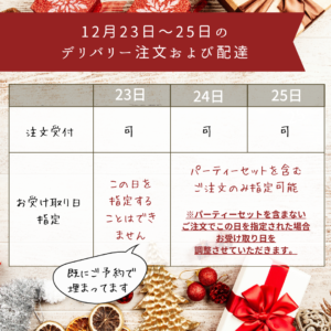 ※12/23~25以外は通常通りのデリバリー配送となります。