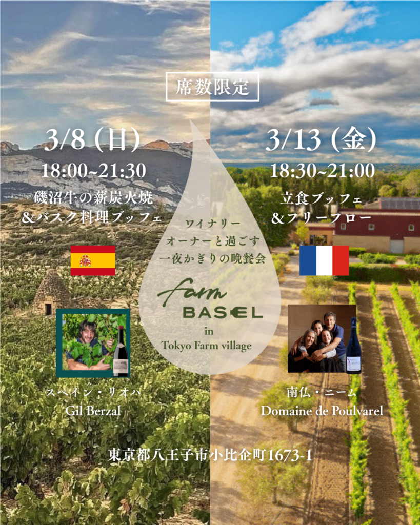 【FARM BESEL】3月、ワイナリー作り手と語らうディナーイベントを開催 in Tokyo Farm village 🍷(8日スペイン,13日フランス)